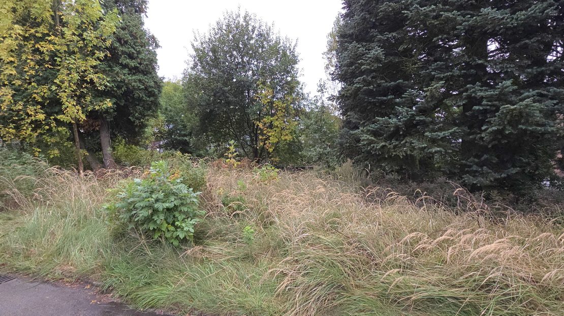 Na chwilę obecną na działce znajduje się trafostacja oraz dzika zieleń (trawa i drzewa), więc wymaga ona oczyszczenia.